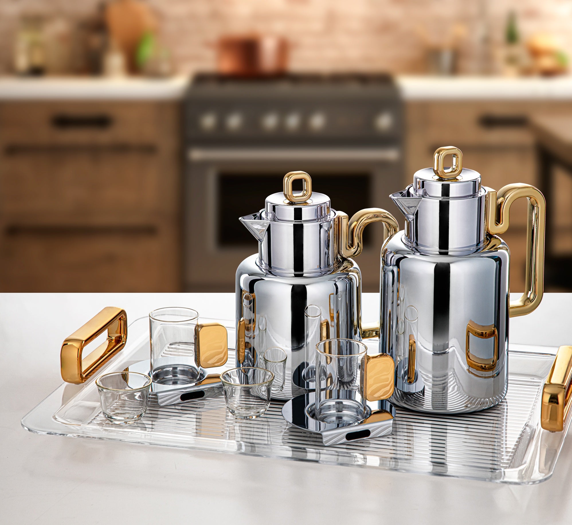 Almarjan Hot Pot Set ABS 1L, 2.5L, 3L Matt silver & frost (EL-100/250/300 MC/FA)